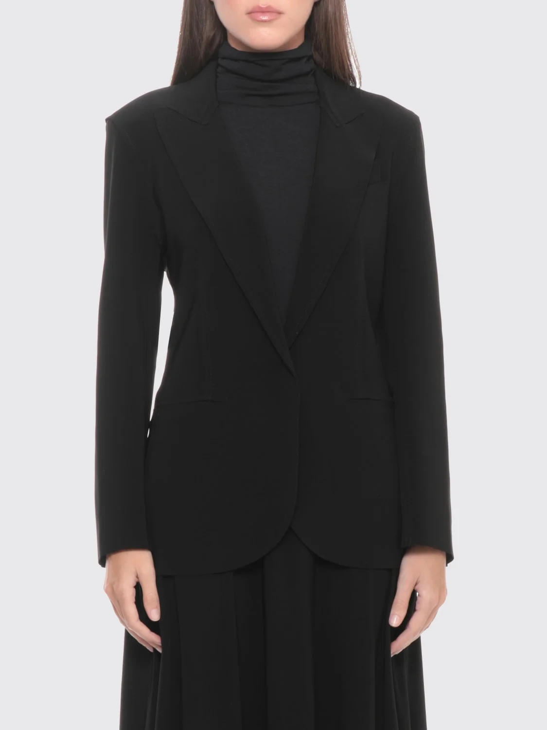DESCRIPTION - Style: Basic - Model: Single-breasted - Neckline: V neckline - Shoulders: Regular - Sleeves: Long - Pockets: Slit pocket - Bottom: With straight hemline - Neck: Lapel - Closure: 1-button - Length: Short jackets - Materials: Polyester - Pattern: Plain-colored DETAILS AND CARE Composition 95% Polyester 5% Spandex SIZE AND FIT Sizes not available Size and fit Regular fit Designer code: KK4264PL157 001 Giglio Code: I11265 Designer: Norma Kamali Collection: Clothing Norma Kamali Category: Clothing > Jacket
