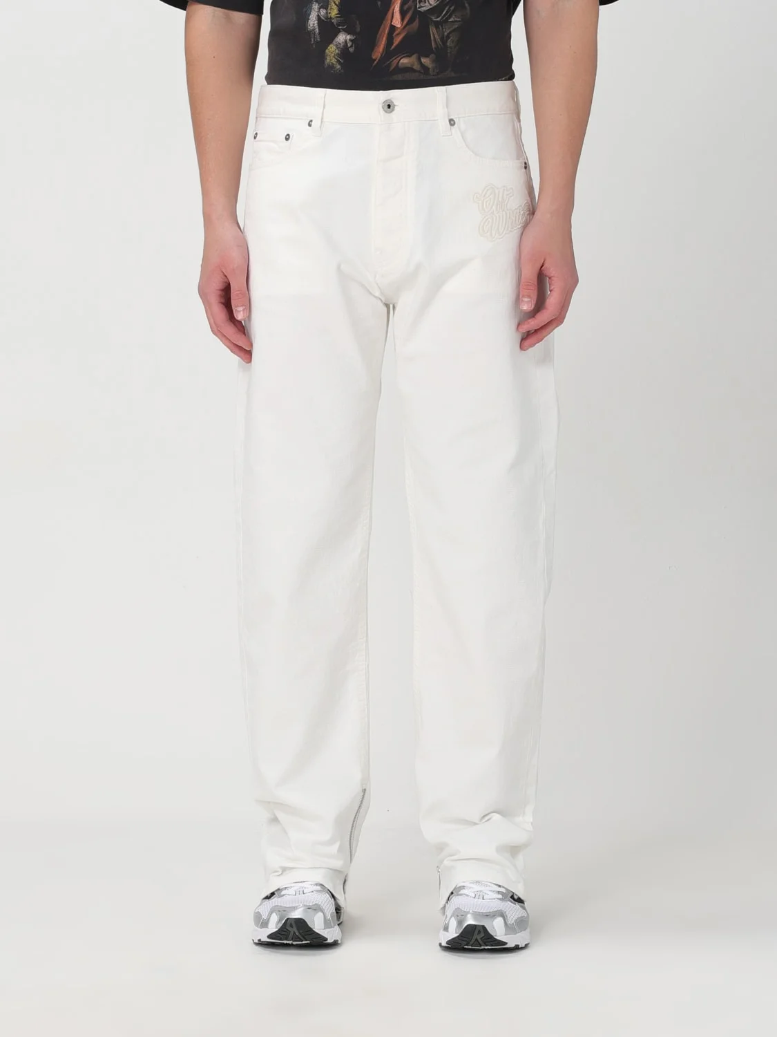 DESCRIPTION - Style: Urban-street - Logo: Embroidered - Pockets: 5-pocket - Waist: Medium - Bottom: With side slit - Closure: With button and zip - Materials: Cotton denim - Pattern: Plain-colored DETAILS AND CARE Composition FABRIC 2% ELASTANE 98% COTTON SIZE AND FIT Sizes not available Size and fit Relaxed fit Designer code: OMYA177S24DEN001 0202 Giglio Code: F34452 Designer: Off-White Collection: Off-White Men Category: Clothing Off-White