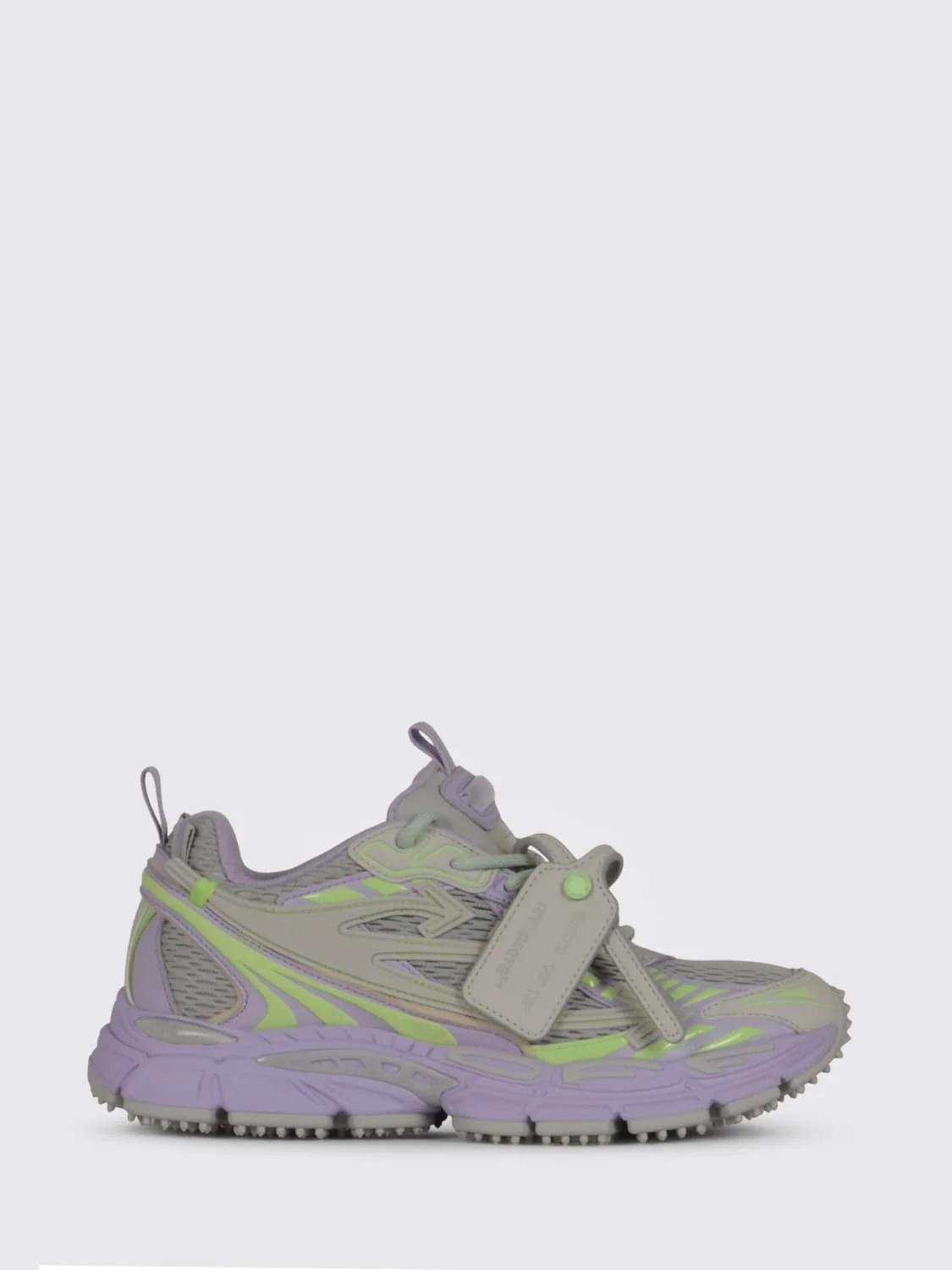 DESCRIPTION - Style: Urban-street - Lining: Mesh, With logo - Model: Lace up - Toe: Round - Ankle: Low top, Padded - Sole: Dented tread, Rubber - Details: With logo charm - Logo: With logo - Occasion: Morning - Materials: Mesh , Polyutherane, Rubber - Pattern: Bicolor DETAILS AND CARE Composition LINING 100% POLYESTER - sole 4% POLYURETHANE SIZE AND FIT Sizes not available Designer code: OWIA289F25FAB001 093F Giglio Code: H69054 Designer: Off-White Collection: Off-White Woman Category: Shoes Off-White