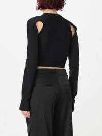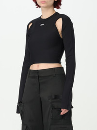 DESCRIPTION - Style: Urban-street - Logo: Embroidered - Model: Cut-out - Neckline: Crewneck - Shoulders: Regular - Bottom: With straight hemline - Sleeves: Long sleeve tops - Materials: Nylon - Pattern: Plain-colored DETAILS AND CARE Composition FABRIC 14% ELASTANE 86% POLYAMIDE NYLON SIZE AND FIT Sizes not available Size and fit Slim fit Designer code: OWAD211C99JER001 1001 Giglio Code: F17290 Designer: Off-White Collection: Off-White Woman Category: Clothing Off-White