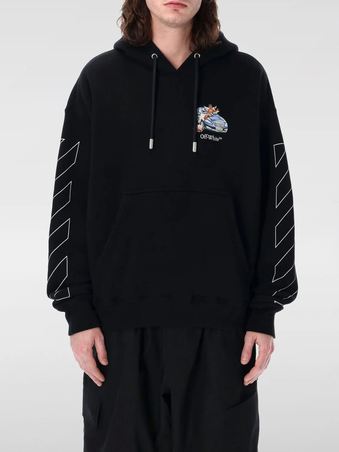 DESCRIPTION - Style: Urban-street - Logo: Contrasting - Hood: With drawstrings - Shoulders: Relaxed - Sleeves: Long - Cuffs: Stretch - Pockets: Kangaroo pocket - Bottom: With straight hemline - Model: With hood - Materials: Cotton - Pattern: Graphic DETAILS AND CARE Composition EMBROIDERY 100% POLYESTER - FABRIC 100% SIZE AND FIT Sizes not available Size and fit Regular fit Designer code: OMBB085S25FLE005 1001 Giglio Code: 429252 Designer: Off-White Collection: Off-White Men Category: Clothing Off-White