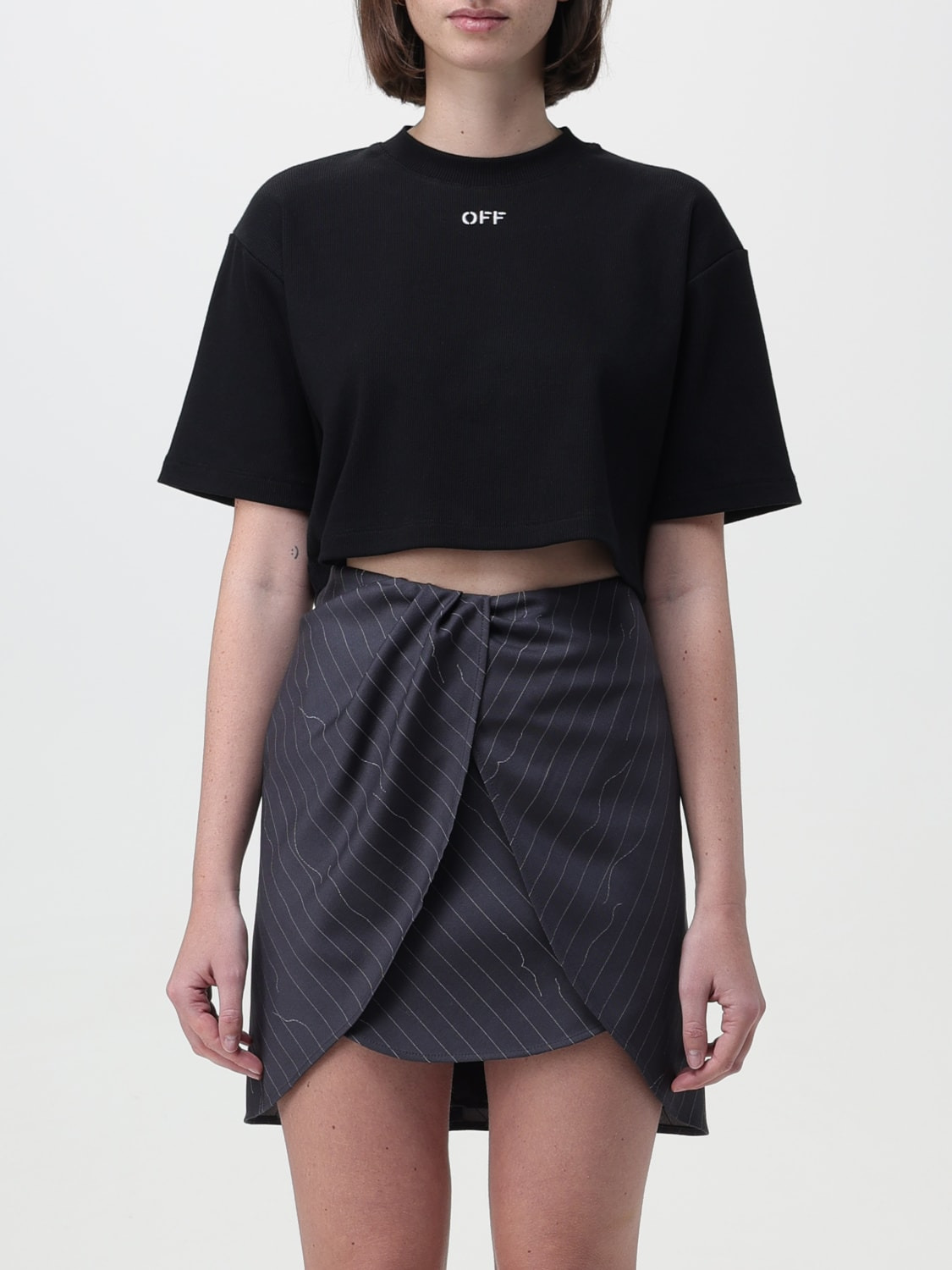 DESCRIPTION - Style: Contemporary - Logo: Contrasting - Neckline: Crewneck - Shoulders: Relaxed - Sleeves: Short - Bottom: With straight hemline - Materials: Cotton - Pattern: Logo DETAILS AND CARE Composition 100co SIZE AND FIT Sizes not available Size and fit Cropped fita Designer code: OWAA081C99JER004 1001 Giglio Code: F14607 Designer: Off-White Collection: Off-White Woman Category: Clothing Off-White