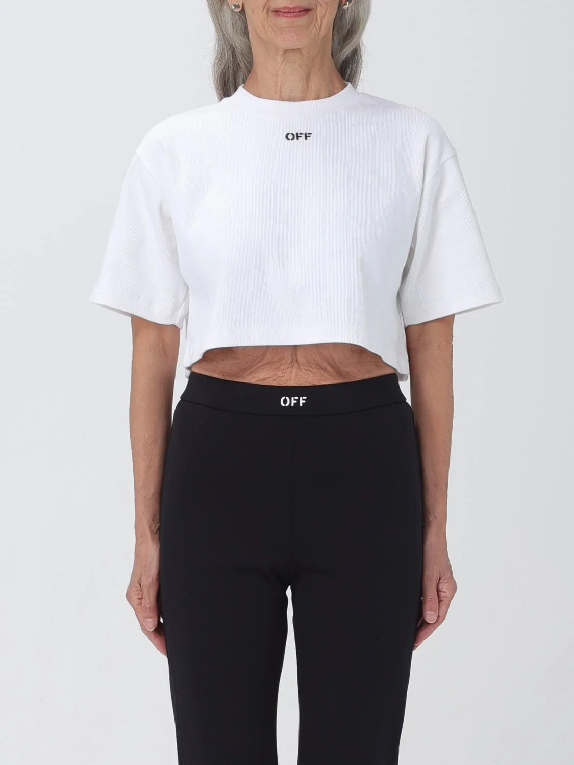 DESCRIPTION - Style: Contemporary - Logo: Contrasting - Neckline: Crewneck - Shoulders: Relaxed - Sleeves: Short - Bottom: With straight hemline - Materials: Cotton - Pattern: Logo DETAILS AND CARE Composition 100co SIZE AND FIT Sizes not available Size and fit Cropped fita Designer code: OWAA081C99JER004 0110 Giglio Code: F14607 Designer: Off-White Collection: Off-White Woman Category: Clothing Off-White