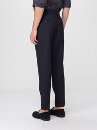 DESCRIPTION - Style: Classic - Model: Tailored - Pockets: Back slit with button - Waist: Medium - Bottom: With straight hemline - Closure: With button and zip - Materials: Wool - Pattern: Plain-colored DETAILS AND CARE Composition 100% Wool; SIZE AND FIT Sizes not available Size and fit Slim fit Designer code: S25MTLG456R DARKNAVY Giglio Code: H05251 Designer: Officine Generale Collection: Officine Generale Men Category: Clothing Officine Generale