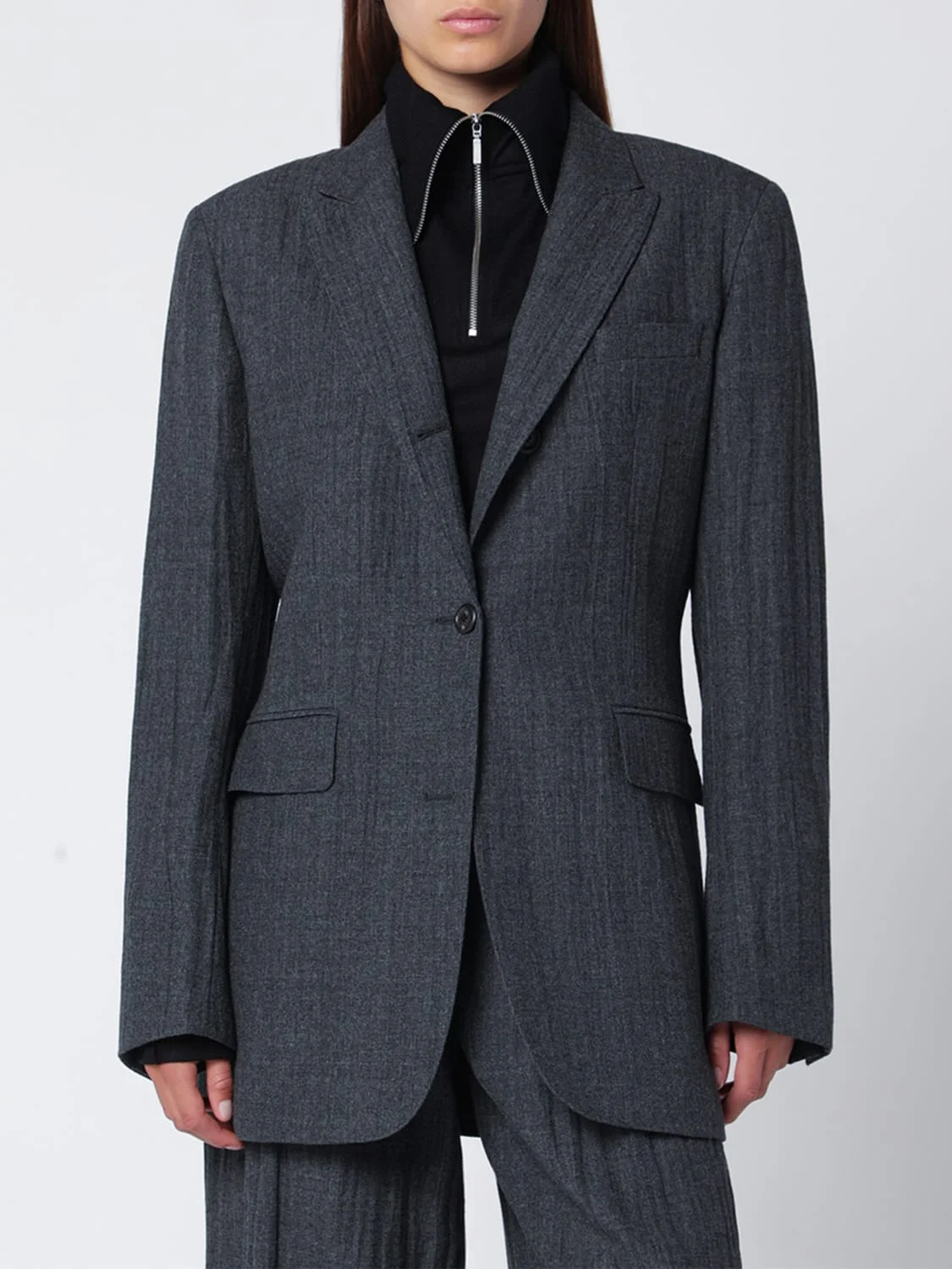 Cutaway Blazer Stone Grey Plisse Wool