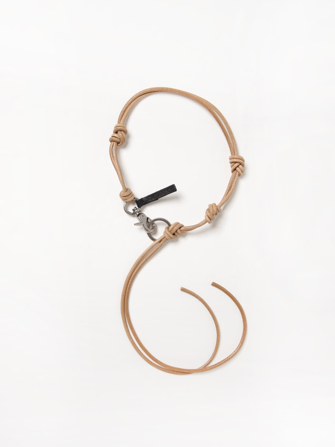 DESCRIPTION - Logo: With logo - Details: With metallic ring, With back knot - Model: Crewneck - Closure: With snap-hook - Materials: Brass, Smooth cowhide - Pattern: Plain-colored DETAILS AND CARE Composition 100% COW LEATHER (BOS TAURUS) SIZE AND FIT Sizes not available Designer code: A4248ULN Natural Leather Giglio Code: 421535 Designer: Our Legacy Collection: Our Legacy Men Category: Accessories Our Legacy