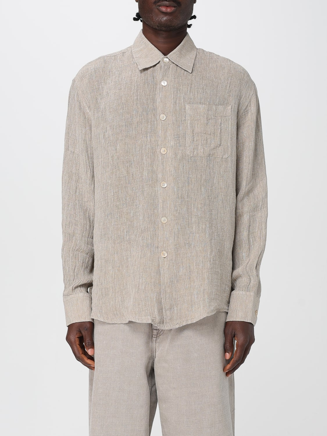 DESCRIPTION - Style: Casual - Neck: French - Shoulders: Regular - Sleeves: Long sleeve shirts - Closure: With buttons - Pockets: Patch pocket - Bottom: With curved hemline - Materials: Linen - Pattern: Plain-colored DETAILS AND CARE Composition 90% LINEN 10% POLYAMIDE SIZE AND FIT Sizes not available Size and fit Regular fit Designer code: M2252AP Pollen Dust Sparse Crepe Giglio Code: 421470 Designer: Our Legacy Collection: Our Legacy Men Category: Clothing Our Legacy