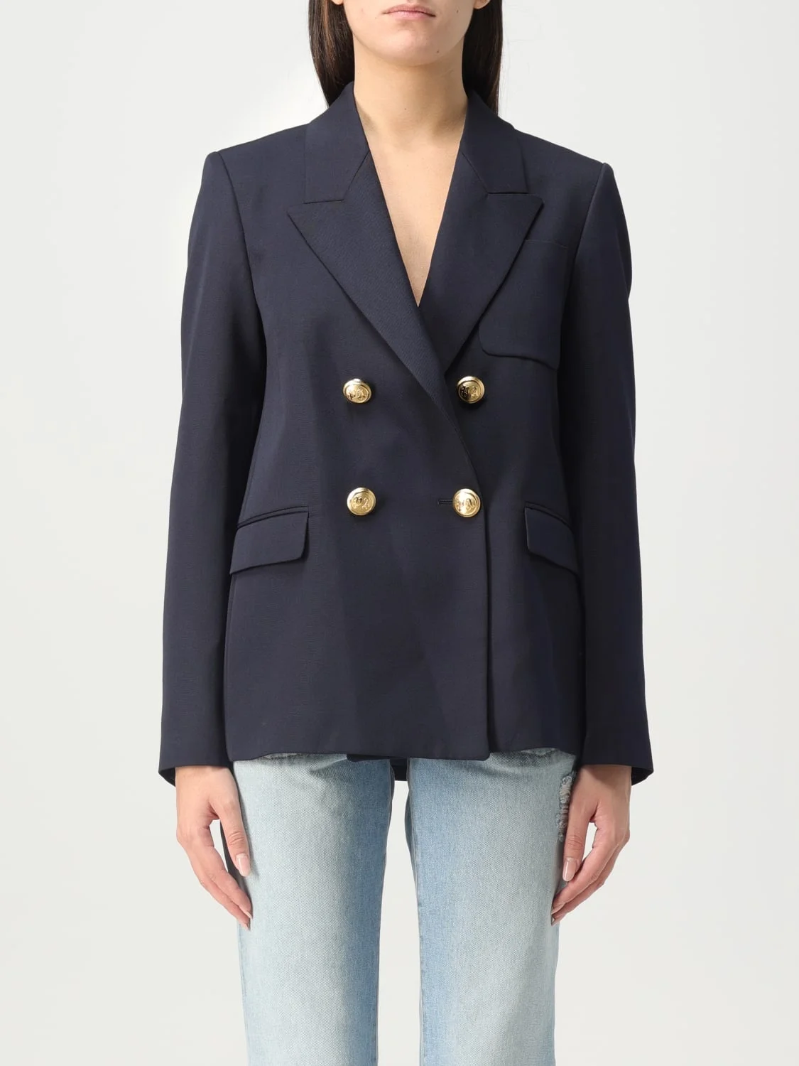 DESCRIPTION - Style: Camo, Elegant - Details: With embroidery - Model: Double-breasted - Neck: Peak lapels - Neckline: Deep V - Shoulders: Regular - Sleeves: Long - Closure: 4-button - Pockets: Slit pocket, With flap - Bottom: With back slit, With straight hemline - Length: Short jackets - Materials: Virgin wool - Pattern: Embroidery, Plain-colored DETAILS AND CARE Composition _55%PL 45%WV SIZE AND FIT Sizes not available Size and fit Regular fit Designer code: PWEN030F23FAB001 4676 Giglio Code: E72448 Designer: Palm Angels Collection: Palm Angels Woman Category: Clothing Palm Angels