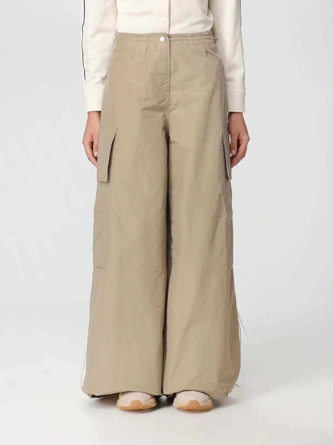 DESCRIPTION - Style: Urban-street - Model: Cargo - Pockets: America , Cargo - Waist: High waist - Bottom: With drawstrings - Closure: With button and zip - Materials: Stretch technical fabric - Pattern: Plain-colored DETAILS AND CARE Composition 100% POLYESTER SIZE AND FIT Sizes not available Size and fit Straight leg Designer code: PWCF009E23FAB001 6161 Giglio Code: 393494 Designer: Palm Angels Collection: Palm Angels Woman Category: Clothing Palm Angels
