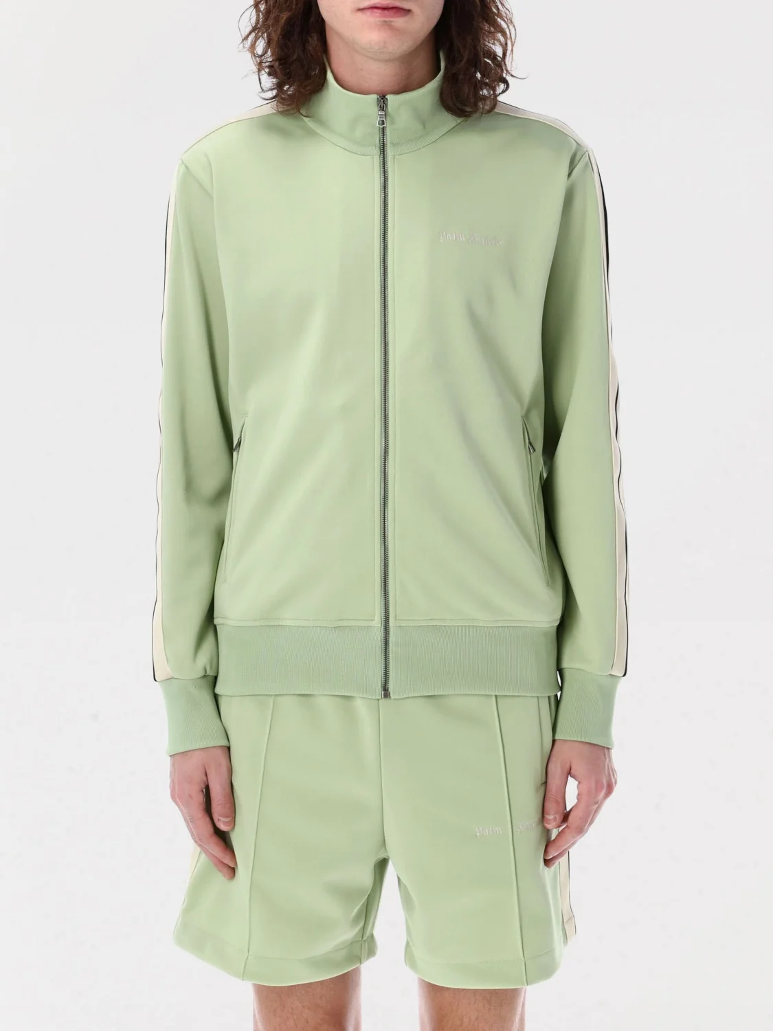 DESCRIPTION - Style: Sporty - Logo: Contrasting - Details: With bands - Shoulders: Regular - Sleeves: Long - Cuffs: Stretch - Closure: With zip - Bottom: With straight hemline - Materials: Polyester - Pattern: Logo DETAILS AND CARE Composition 100% polyester SIZE AND FIT Sizes not available Size and fit Regular fit Designer code: PMBD058S25FAB001 5303 Giglio Code: G79537 Designer: Palm Angels Collection: Palm Angels Men Category: Clothing Palm Angels