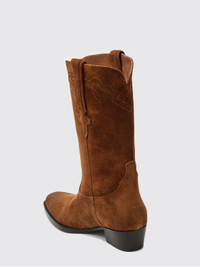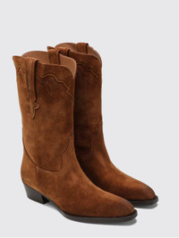 DESCRIPTION - Lining: Leather, With logo - Toe: Almond - Shaft: Calf-length - Sole: Leather - Heel: Low heel - Model: Texan - Details: With double tab - Materials: Suede calfskin - Pattern: Plain-colored DETAILS AND CARE Composition UPPER 100% CALF BOS TAURUS LINING 100% GOAT H SIZE AND FIT Sizes Heel: 3,5 cm Designer code: PX1452XWACS COGNAC Giglio Code: H39942 Designer: Paris Texas Collection: Paris Texas Woman Category: Shoes Paris Texas