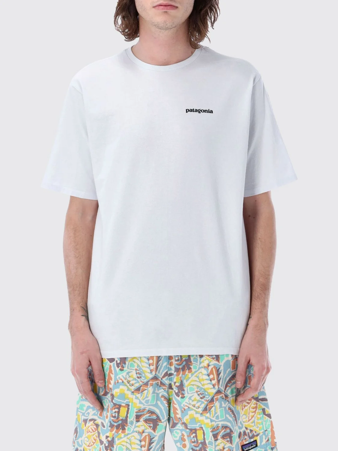 DESCRIPTION - Style: Casual, Urban-street - Logo: Back, Contrasting - Neckline: Crewneck - Shoulders: Relaxed - Sleeves: Short - Bottom: With straight hemline - Materials: Cotton blend, Recycled cotton - Pattern: Logo DETAILS AND CARE Composition 50% recycled cotton 50% recycled polyester SIZE AND FIT Sizes not available Size and fit Relaxed fit Designer code: 38504 WHI Giglio Code: H42313 Designer: Patagonia Collection: Patagonia Men Category: Clothing Patagonia