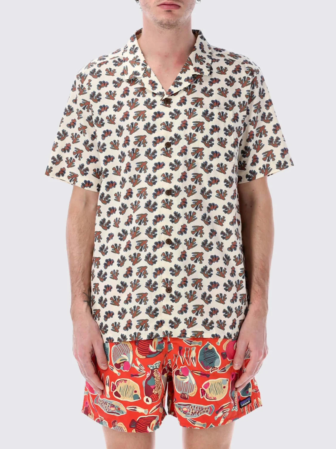 DESCRIPTION - Style: Casual - Neck: Cuban collar - Shoulders: Regular - Closure: With buttons - Pockets: Patch pocket - Bottom: With straight hemline - Sleeves: Short sleeve shirts - Materials: Organic cotton - Pattern: Ethnic DETAILS AND CARE Composition 100% Organic Cotton SIZE AND FIT Sizes not available Size and fit Regular fit Designer code: 52567 OCWL Giglio Code: G88158 Designer: Patagonia Collection: Patagonia Men Category: Clothing Patagonia