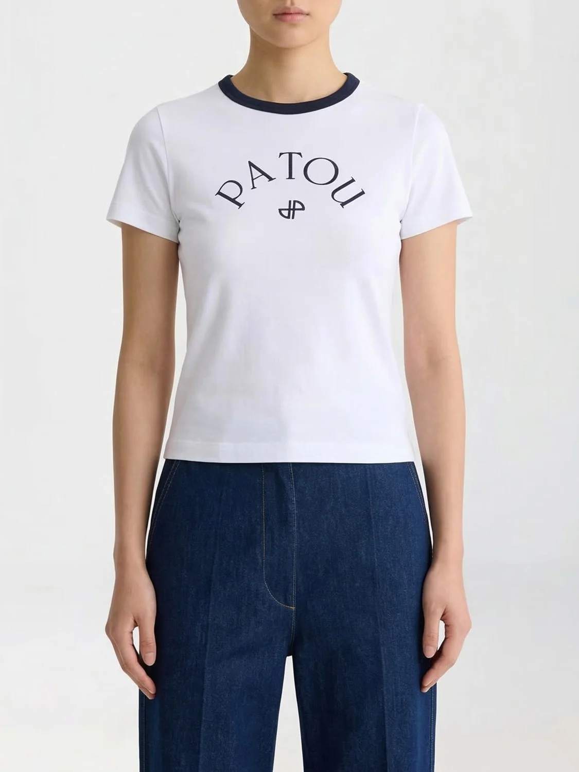 DESCRIPTION - Style: Casual - Logo: Contrasting - Model: Crewneck - Neckline: Crewneck - Shoulders: Regular - Sleeves: Short - Bottom: With straight hemline - Materials: Stretch cotton - Pattern: Logo DETAILS AND CARE Composition 100% CO - Cotton SIZE AND FIT Sizes not available Size and fit Slim fit Designer code: JE2499994 001W Giglio Code: I09263 Designer: Patou Collection: Clothing Patou Category: Clothing > T-Shirt