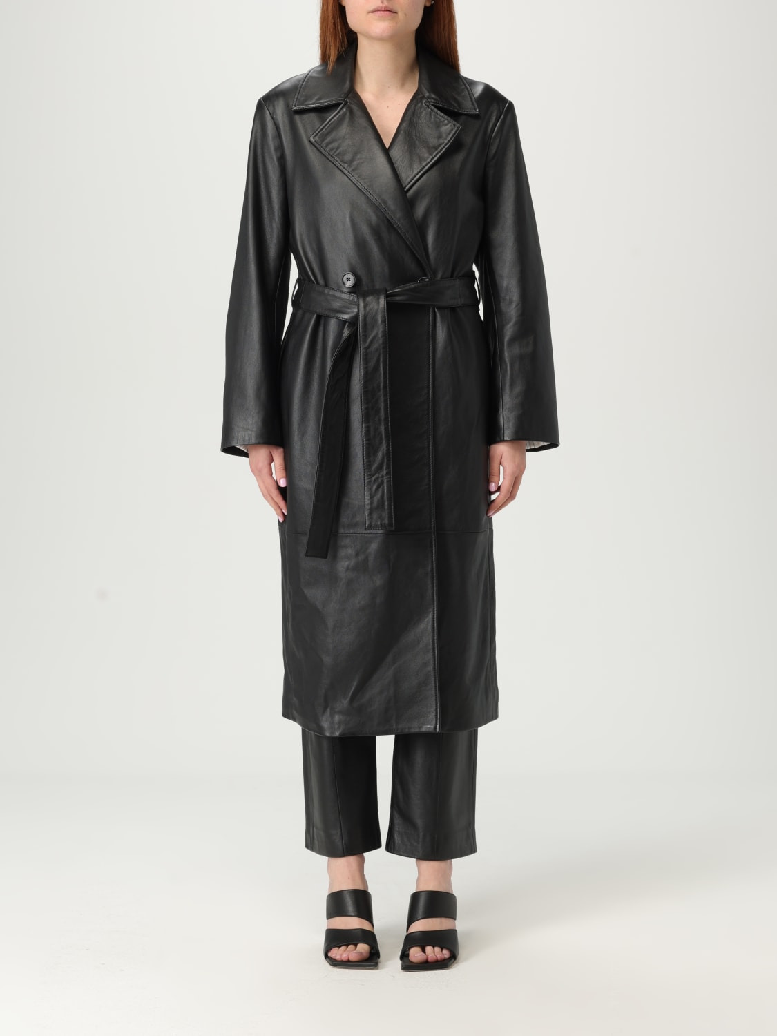 Women's Black Leather Trench Coat