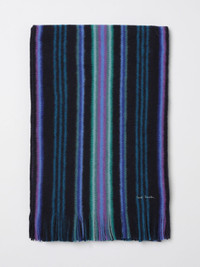 DESCRIPTION - Logo: Embroidered, Lettering - Bottom: Fringed - Shape: Rectangular - Materials: Merino wool - Pattern: Multicolor stripes DETAILS AND CARE Composition 100% MERINO WOOL SIZE AND FIT Sizes not available Designer code: M1A151FT643 47 Giglio Code: H47898 Designer: Paul Smith Collection: Paul Smith Men Category: Accessories Paul Smith
