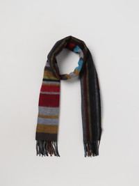 DESCRIPTION - Bottom: Fringed - Shape: Rectangular - Materials: Wool - Pattern: Multicolor stripes DETAILS AND CARE Composition 95% LAMBSWOOL 5% CASHMERE Wash and Care Dry clean SIZE AND FIT Sizes not available Designer code: M1A150KL572 92 Giglio Code: E96263 Designer: Paul Smith Collection: Paul Smith Men Category: Accessories Paul Smith