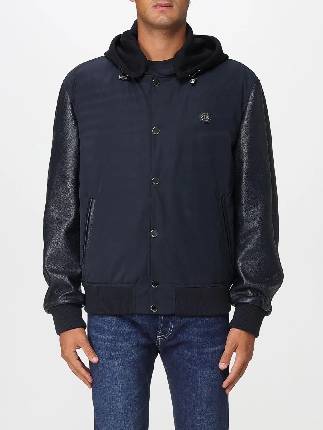 DESCRIPTION - Style: Urban-street - Logo: With logo - Hood: With drawstrings - Shoulders: Regular - Sleeves: Long - Closure: With buttons - Pockets: America - Bottom: With straight hemline - Model: With hood - Length: Short jackets - Materials: Smooth calfskin - Pattern: undefined DETAILS AND CARE Composition Corpo: 100% Poliestere. Maniche: 100% Pelle d SIZE AND FIT Sizes not available Size and fit Regular fit Designer code: FAECMLB1976PLE010N 24 Giglio Code: H38777 Designer: Philipp Plein Collection: Philipp Plein Men Category: Clothing Philipp Plein