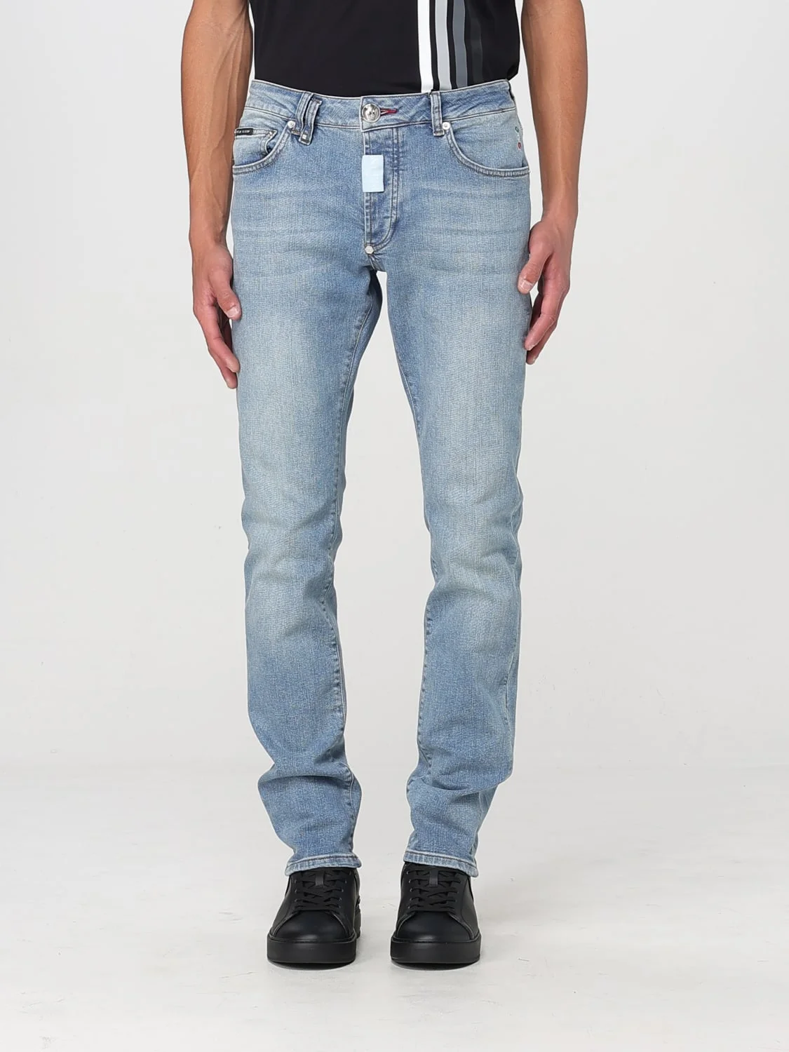 DESCRIPTION - Style: Underground - Pockets: 5-pocket - Waist: Medium - Bottom: With straight hemline - Closure: With button and zip - Materials: Cotton denim - Pattern: Plain-colored DETAILS AND CARE Composition not available SIZE AND FIT Sizes not available Size and fit Regular fit Designer code: SAECMDT4011PDE004N02 13MI Giglio Code: G90139 Designer: Philipp Plein Collection: Philipp Plein Men Category: Clothing Philipp Plein