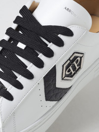 DESCRIPTION - Logo: Monogram, With logo - Lining: Leather, With logo - Model: Lace up - Toe: Round - Ankle: Low top, Padded - Sole: Rubber - Materials: Smooth calfskin - Pattern: Plain-colored DETAILS AND CARE Composition Leather | 100% COW LEATHER SIZE AND FIT Sizes not available Designer code: AADSUSC0679PLE075N 02 Giglio Code: G13215 Designer: Philipp Plein Collection: Philipp Plein Men Category: Shoes Philipp Plein