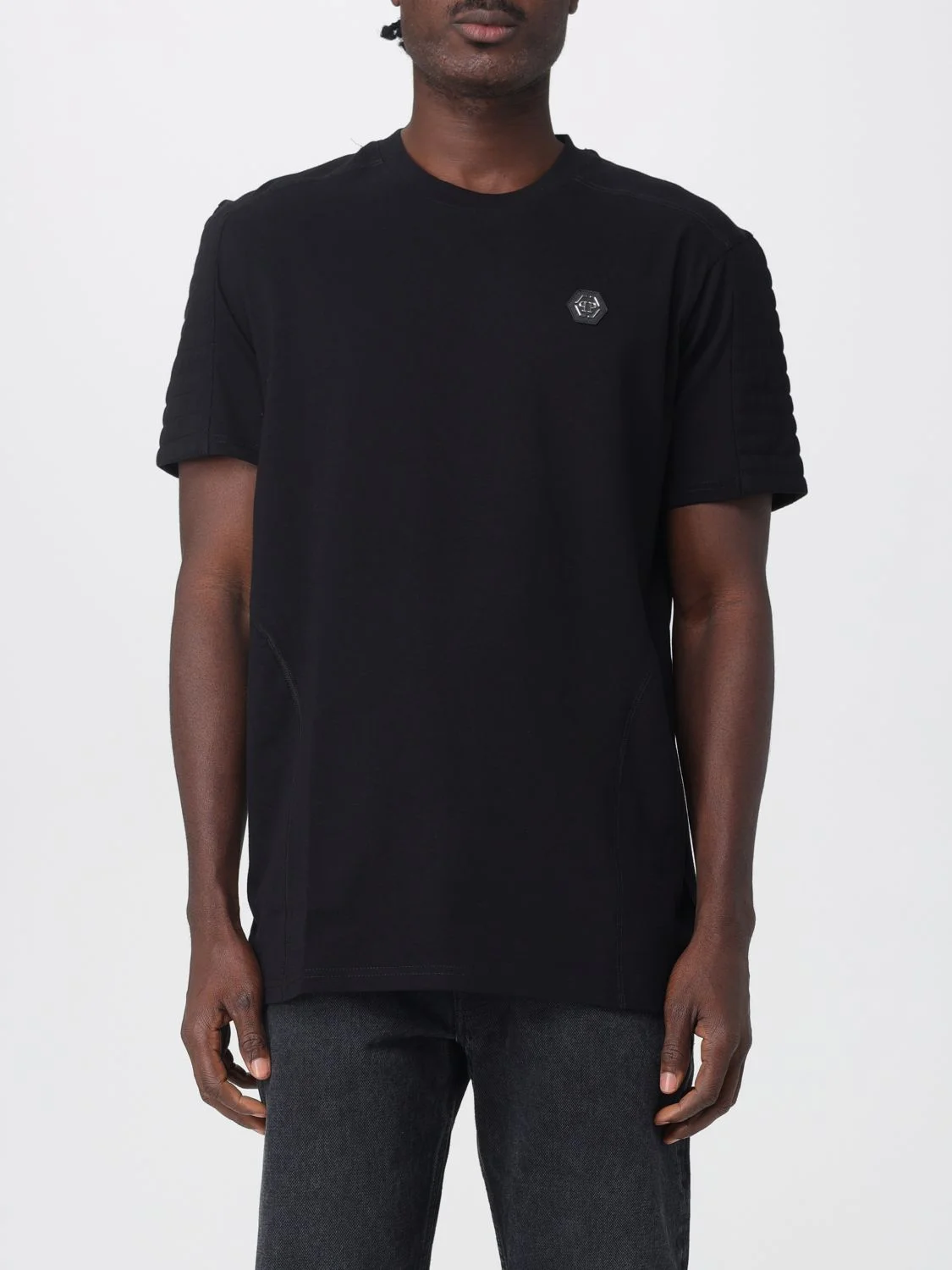 DESCRIPTION - Style: Sporty - Logo: Hexagon - Model: Crewneck - Neckline: Crewneck - Shoulders: Regular - Sleeves: Short - Bottom: With straight hemline - Materials: Cotton - Pattern: Logo, Plain-colored DETAILS AND CARE Composition Cotton | 100% COTTON SIZE AND FIT Sizes not available Size and fit Regular fit Designer code: FAECMTK8506PJY002N 02 Giglio Code: H32030 Designer: Philipp Plein Collection: Philipp Plein Men Category: Clothing Philipp Plein