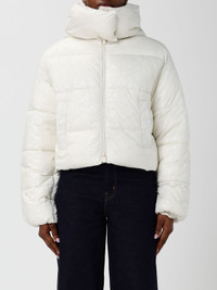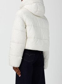 SHORT DOWN JACKET IN LOGO-PRINT TECHNICAL CANVAS