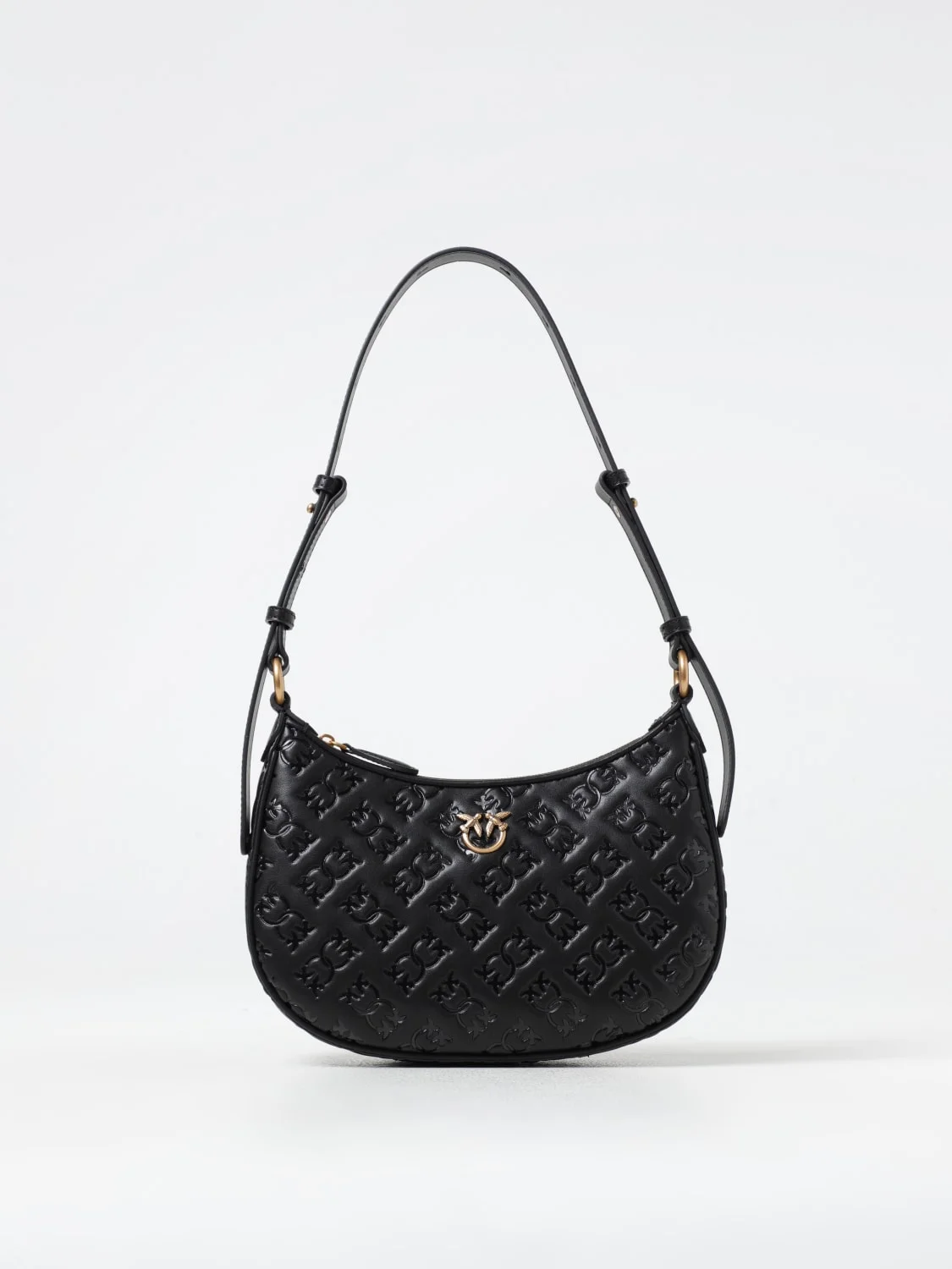 DESCRIPTION - Logo: Love Birds - Model: Shoulder - Closure: With zip - Shape: Round - Shoulder strap: Adjustable - Materials: Embossed leather - Pattern: Plain-colored DETAILS AND CARE Composition 100% calf leather SIZE AND FIT Sizes Width : 25 cm Height: 16 cm Depth: 6 cm Designer code: 102790A1YB Z99Q Giglio Code: G11215 Designer: Pinko Collection: Pinko Woman Category: Bags Pinko