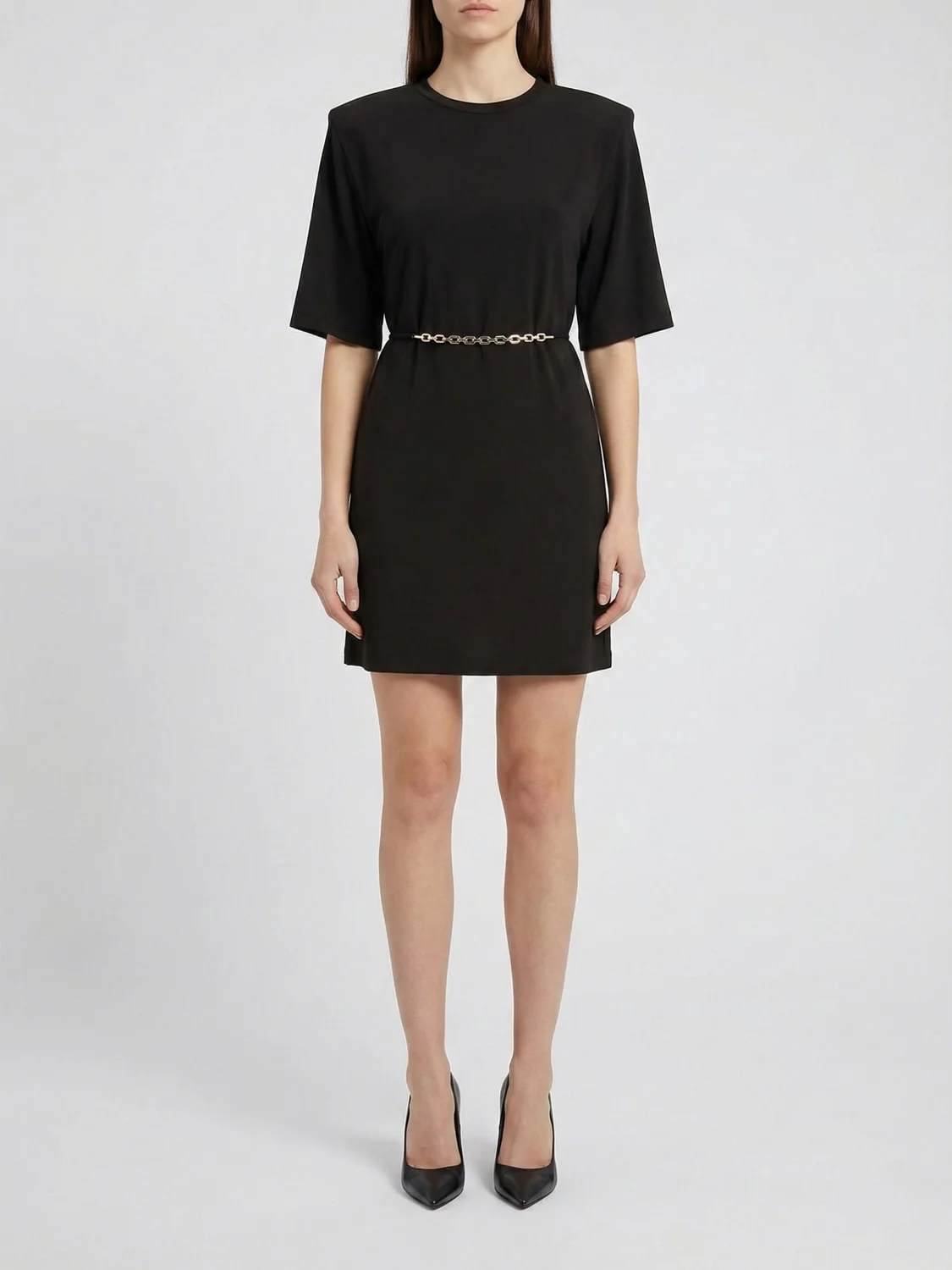 MINI DRESS WITH STRUCTURED SHOULDERS AND CHAIN