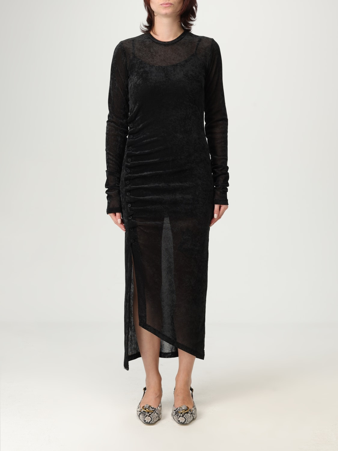 DESCRIPTION - Style: Elegant - Neckline: Crewneck - Shoulders: Regular - Closure: Side closure with buttons - Bottom: With asymmetric hemline - Model: Curled - Length: Long dresses - Occasion: Evening and party dresses - Sleeves: Long sleeve dresses - Materials: Velvet - Pattern: Plain-colored DETAILS AND CARE Composition not available SIZE AND FIT Sizes not available Size and fit Slim fit Designer code: 106090A307 Z99 Giglio Code: H24693 Designer: Pinko Collection: Pinko Woman Category: Clothing Pinko