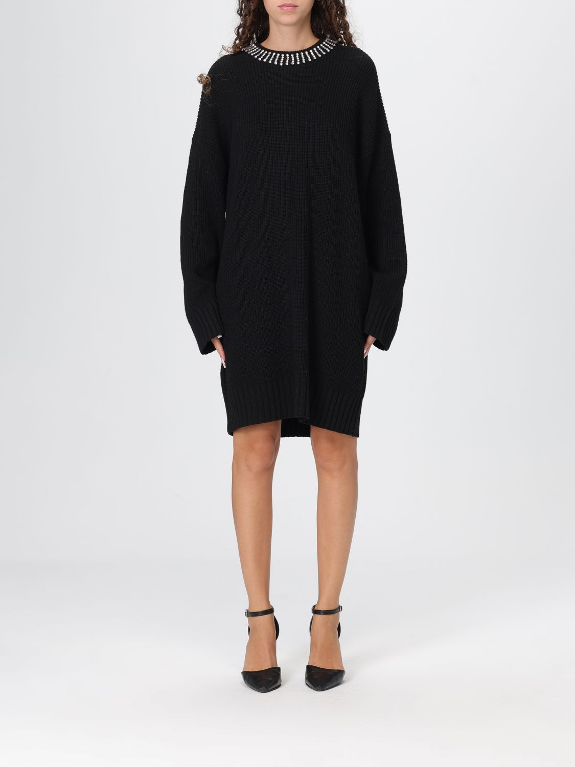 KNIT DRESS WITH RHINESTONE-DETAILED NECK