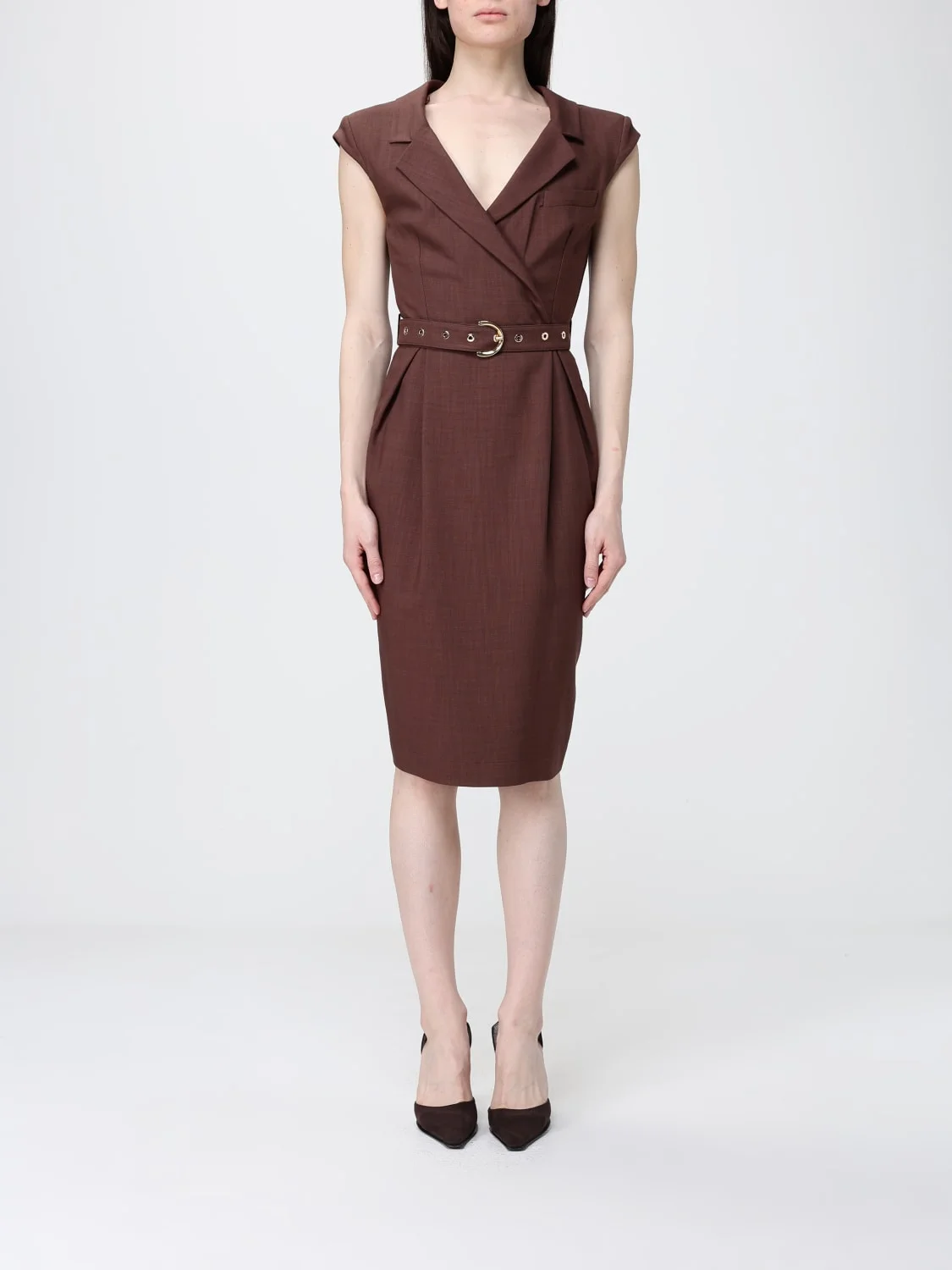 DESCRIPTION - Style: Classic - Model: Blazer, Wrap-around - Shoulders: Regular - Closure: Back closure with zip - Pockets: America - Waist: With adjustable belt - Bottom: With back slit, With straight hemline - Neck: Lapel - Length: Midi dresses - Occasion: Morning dresses - Sleeves: Short-sleeve dresses - Materials: Crepe - Pattern: Plain-colored DETAILS AND CARE Composition EST - Tessuto Esterno: 91%VI 8%PL 1%EA SIZE AND FIT Sizes not available Size and fit Regular fit Designer code: 106565A2W6 L78 Giglio Code: 441812 Designer: Pinko Collection: Clothing Pinko Category: Clothing > Dress
