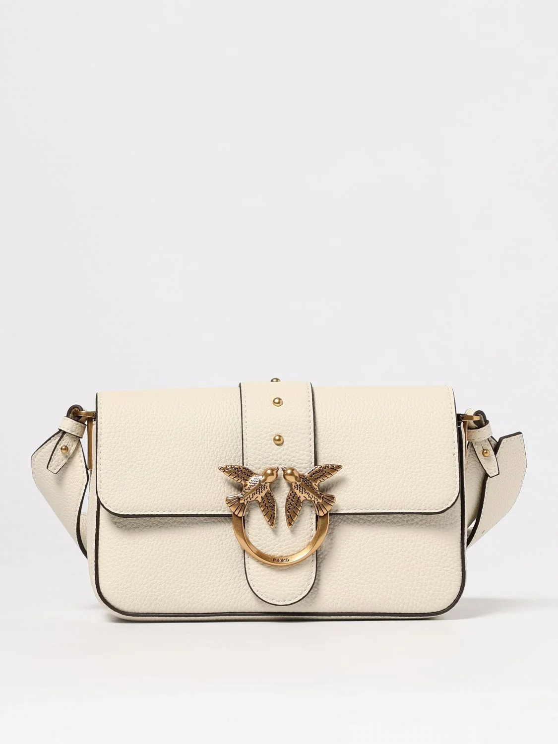 DESCRIPTION - Style: Contemporary - Logo: Love Birds - Model: Shoulder - Closure: With button flap - Shape: Rectangular - Shoulder strap: Adjustable and removable - Materials: Grained leather - Pattern: Logo DETAILS AND CARE Composition not available SIZE AND FIT Sizes not available Designer code: 104340A2OX Z14Q Giglio Code: H36384 Designer: Pinko Collection: Pinko Woman Category: Bags Pinko