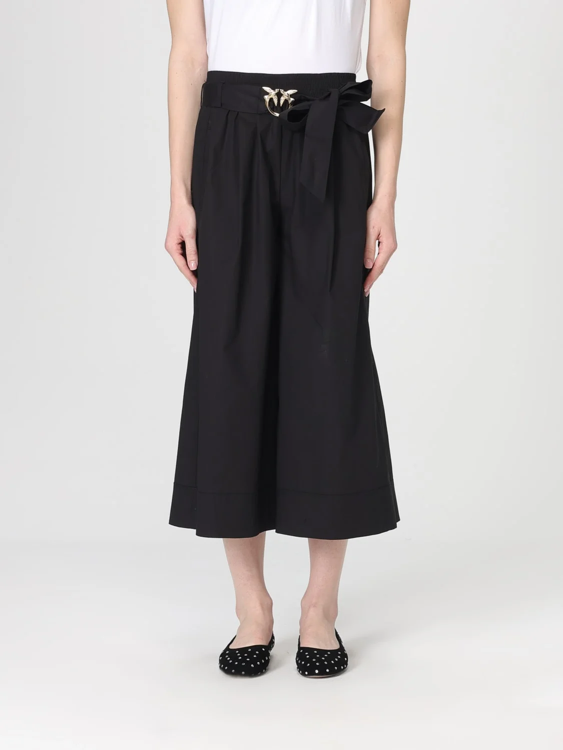 DESCRIPTION - Style: Casual - Logo: Pinko Love Birds - Model: With pleats - Length: Long - Pockets: Slit pocket - Waist: Medium waist - Bottom: With straight hemline - Materials: Cotton - Pattern: Plain-colored DETAILS AND CARE Composition EST - Tessuto Esterno: 97%CO 3%EA SIZE AND FIT Sizes not available Size and fit Cropped fita Designer code: 106439A35Q Z99 Giglio Code: H84469 Designer: Pinko Collection: Pinko Woman Category: Clothing Pinko