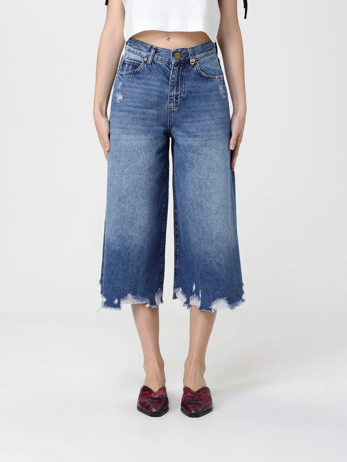 LONG DENIM SHORTS WITH DISTRESSED HEM