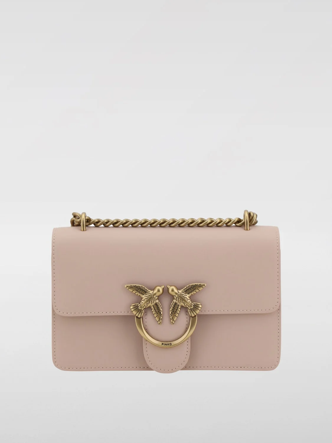 DESCRIPTION - Logo: Love Birds - Lining: With zipped partition - Model: Shoulder - Closure: With button flap - Shape: Rectangular - Handle: Leather - Materials: Smooth calfskin - Pattern: Monogram DETAILS AND CARE Composition pelle SIZE AND FIT Sizes Width : 21 cm Height: 13 cm Depth: 6 cm Designer code: 100074A0F1 O81Q Giglio Code: G53905 Designer: Pinko Collection: Pinko Woman Category: Bags Pinko