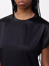 STRETCH SILK SATIN BLOUSE WITH ROUND NECKLINE