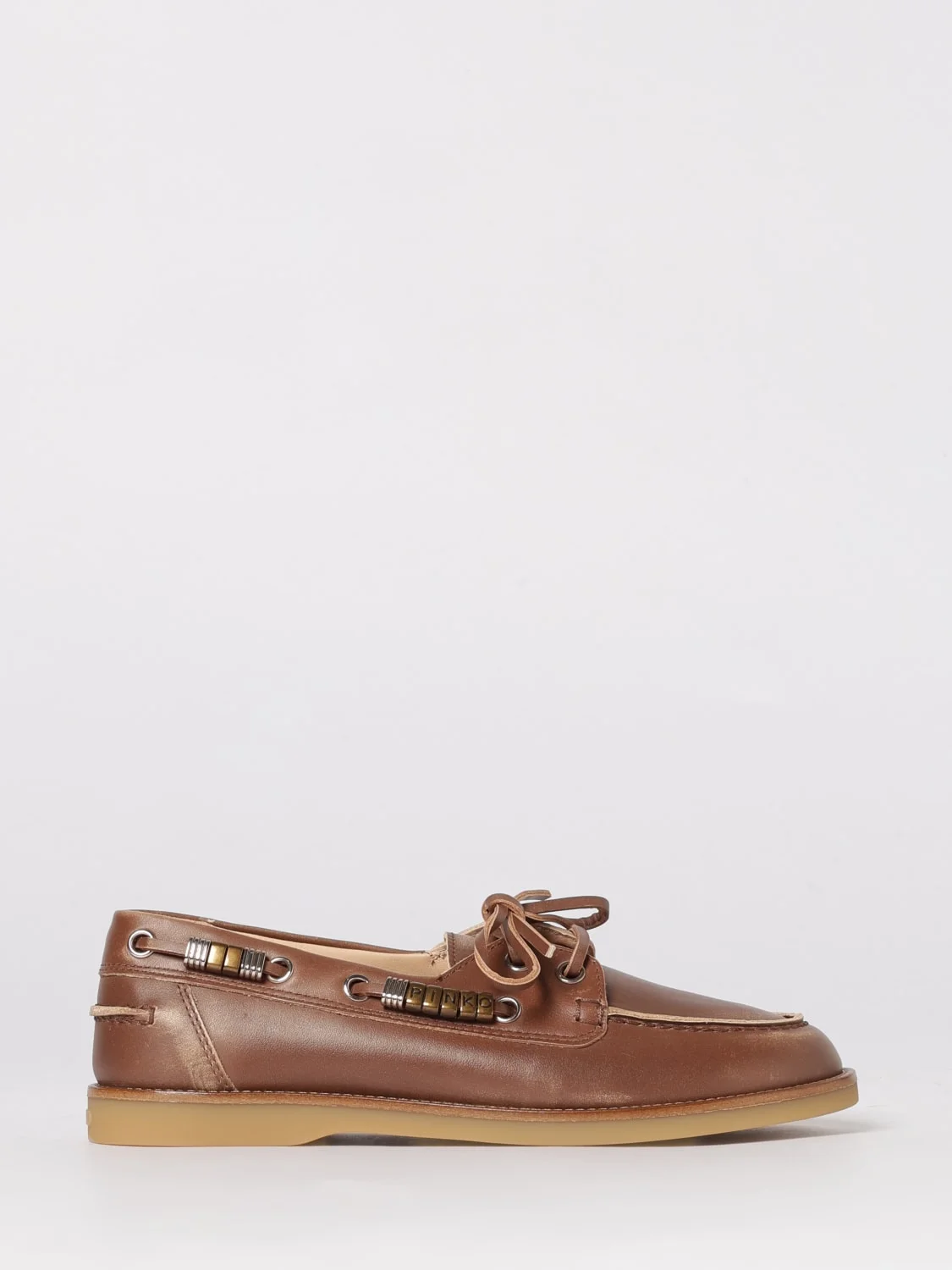 DESCRIPTION - Style: Vintage - Logo: Lettering - Details: With ribbons, With studs - Model: Boat - Toe: Raised toe box, Round - Sole: Rubber - Heel: Low heel - Lining: With logo - Occasion: Morning - Materials: Cowhide - Pattern: Embroidery DETAILS AND CARE Composition UPPER: 100% BOS TAURUS (COW); SIZE AND FIT Sizes not available Designer code: SD0539P001 205 Giglio Code: 441864 Designer: Pinko Collection: Shoes Pinko Category: Shoes > Loafer