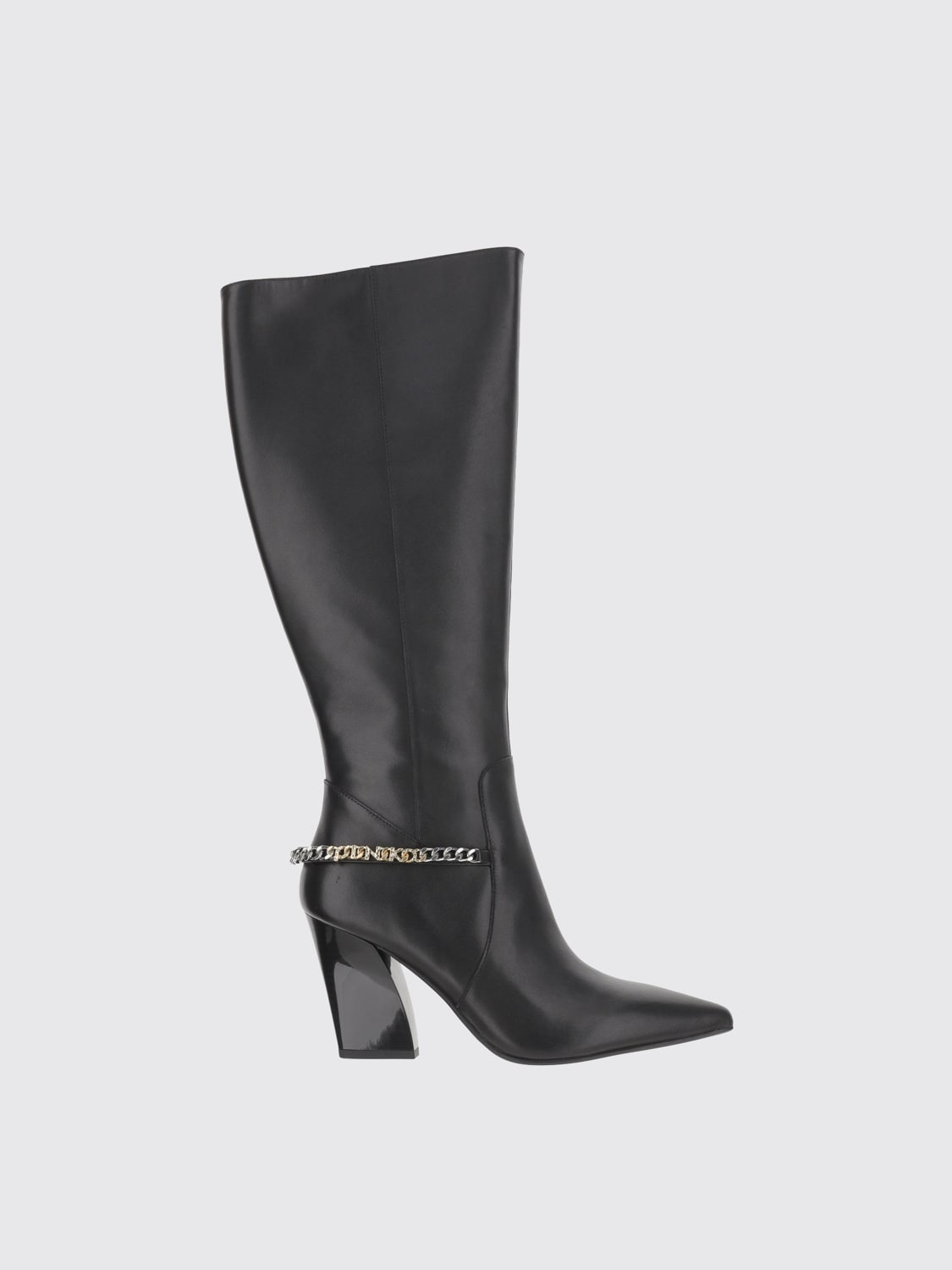 DESCRIPTION - Logo: Metallic - Lining: With logo - Closure: Side closure with zip - Toe: Almond - Shaft: Knee-high - Sole: Rubber - Heel: undefined - Materials: Smooth leather - Pattern: Plain-colored DETAILS AND CARE Composition 100% nylon SIZE AND FIT Sizes not available Designer code: SD0419P087 Z99 Giglio Code: H27395 Designer: Pinko Collection: Pinko Woman Category: Shoes Pinko