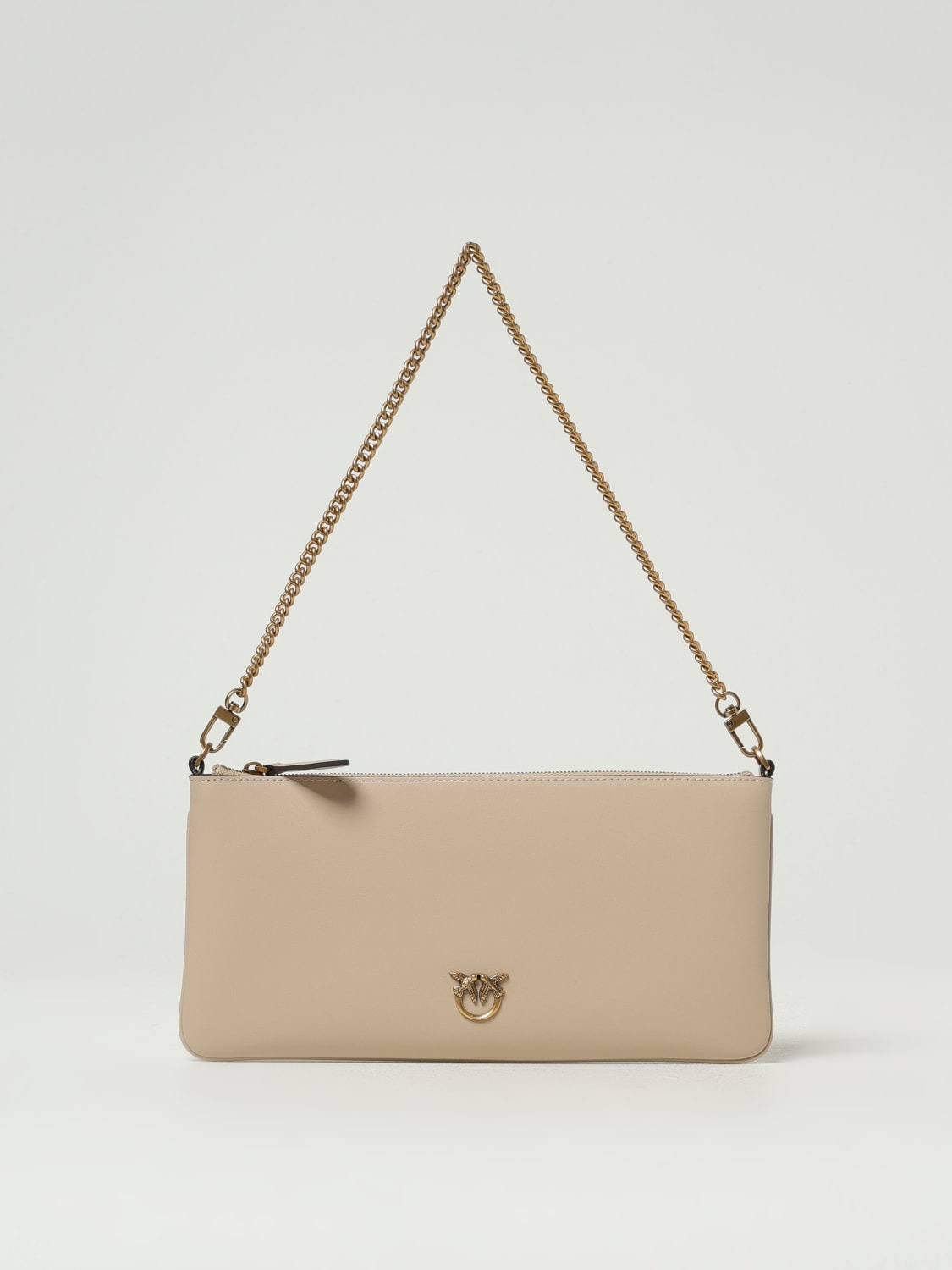 DESCRIPTION - Logo: Metallic, Love Birds - Model: Shoulder - Closure: With zip - Shape: Rectangular - Handle: Metal mesh - Pattern: Plain-colored, Monogram DETAILS AND CARE Composition PEL - Pelle: 100%HZ - FOD - Fodera: 100 SIZE AND FIT Sizes Width : 28 cm Height: 13 cm Depth: 2 cm Designer code: 102747A0F1 D01Q Giglio Code: 425487 Designer: Pinko Collection: Pinko Woman Category: Bags Pinko