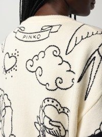 DESCRIPTION - Style: Pop - Logo: Contrasting - Details: WIth contrasting edges - Model: Crewneck - Neckline: Crewneck - Shoulders: Relaxed - Sleeves: Long - Bottom: With straight hemline - Materials: Merino wool - Pattern: Graphic DETAILS AND CARE Composition not available SIZE AND FIT Sizes not available Size and fit Regular fit Designer code: 105427A2PK ZE1 Giglio Code: H20872 Designer: Pinko Collection: Pinko Woman Category: Clothing Pinko
