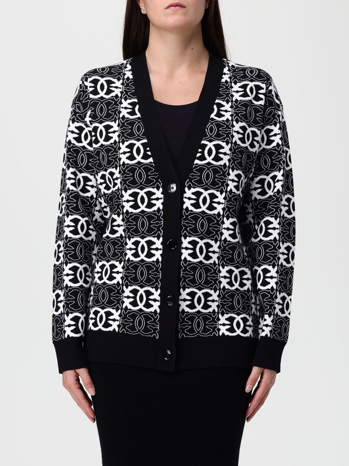 DESCRIPTION - Style: Casual - Logo: Jacquard - Neckline: V neckline - Shoulders: Regular - Sleeves: Long - Cuffs: Ribbed - Closure: 4-button - Bottom: With ribbed edges, With straight hemline - Materials: Viscose blend - Pattern: Logo DETAILS AND CARE Composition Filato Esterno: 72%VI 28%PL SIZE AND FIT Sizes not available Size and fit Regular fit Designer code: 106042A2YD ZZ2 Giglio Code: H33589 Designer: Pinko Collection: Pinko Woman Category: Clothing Pinko