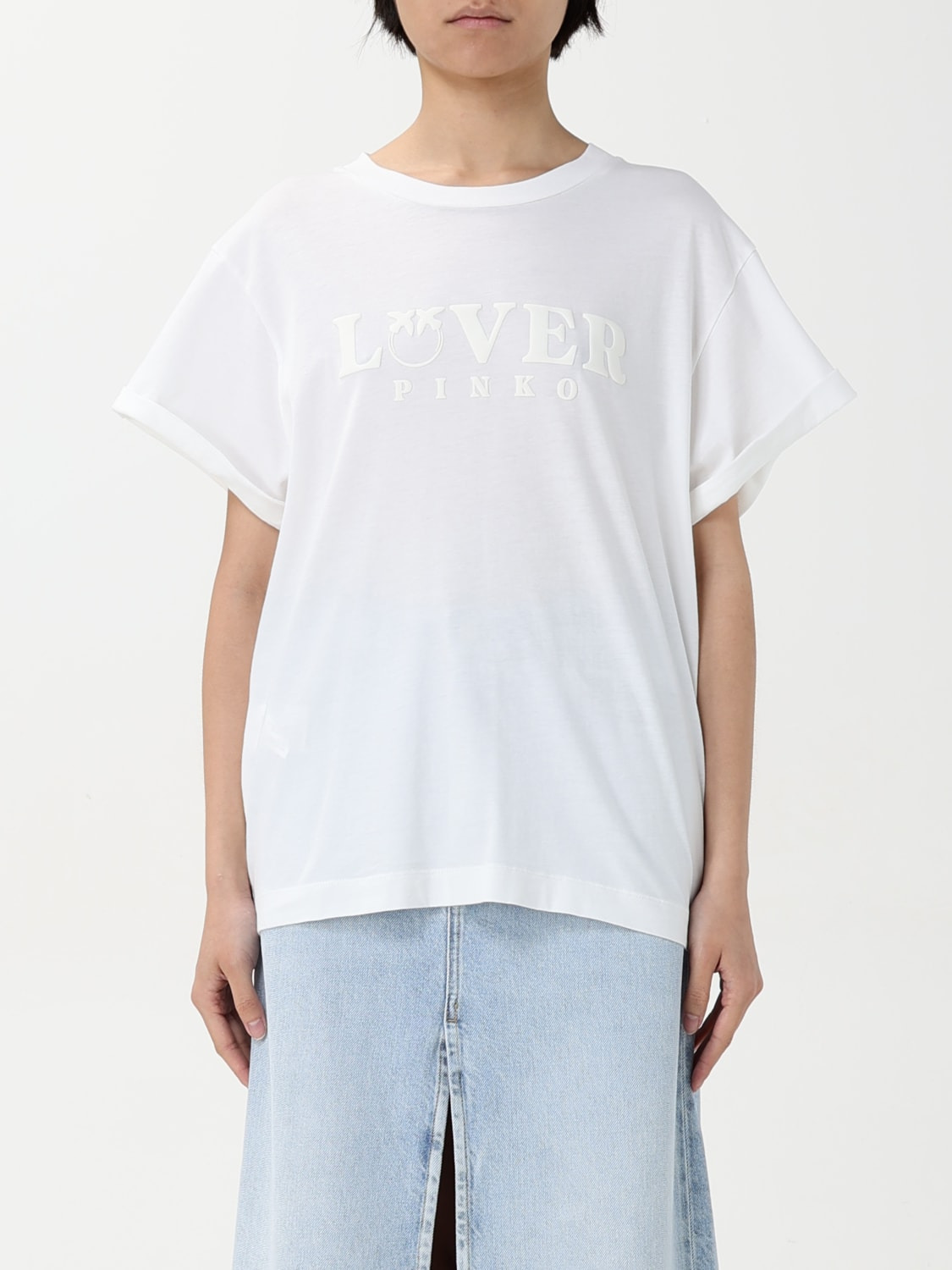 DESCRIPTION - Style: Sporty - Logo: Love Birds - Model: Crewneck - Neckline: Crewneck - Shoulders: Relaxed - Sleeves: Short - Bottom: With straight hemline - Materials: Cotton - Pattern: Slogan DETAILS AND CARE Composition fabric SIZE AND FIT Sizes not available Size and fit Regular fit Designer code: 104605A2D1 Z05 Giglio Code: G59487 Designer: Pinko Collection: Pinko Woman Category: Clothing Pinko