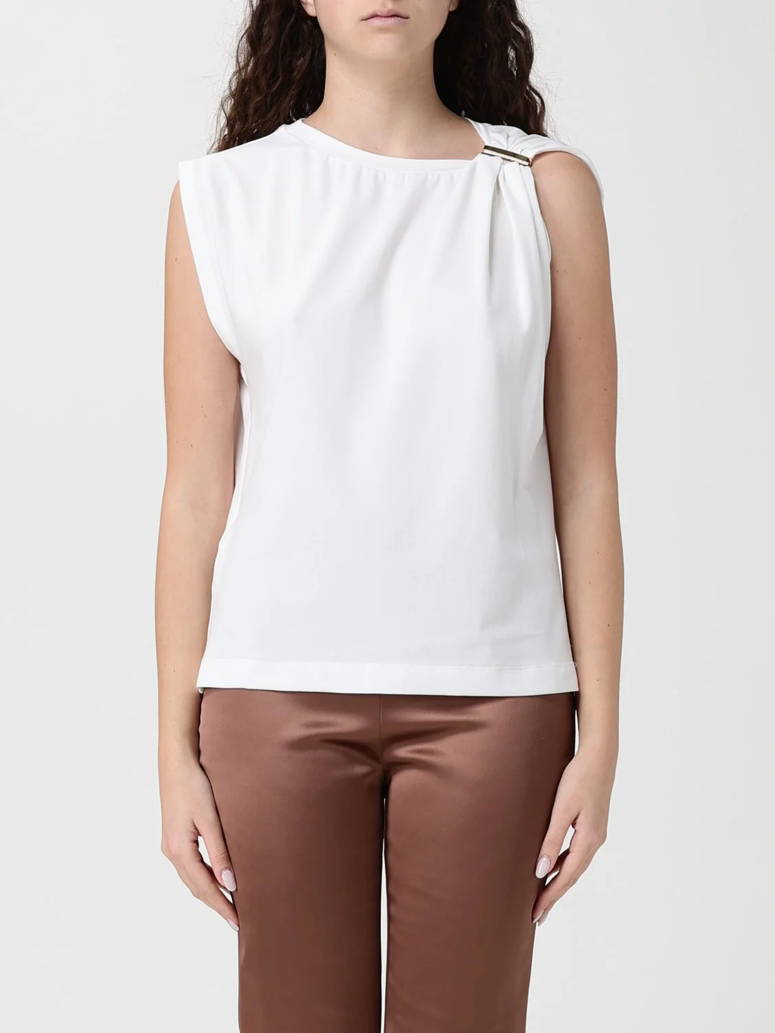 DESCRIPTION - Style: Casual, Chic - Details: With metal plate - Model: Draped - Neckline: Asymmetric - Bottom: With straight hemline - Occasion: Morning - Sleeves: Sleeveless tops - Materials: Pima cotton - Pattern: Plain-colored DETAILS AND CARE Composition SIZE AND FIT Sizes not available Size and fit Regular fit Designer code: 106478A35D Z05 Giglio Code: I06111 Designer: Pinko Collection: Clothing Pinko Category: Clothing > Top