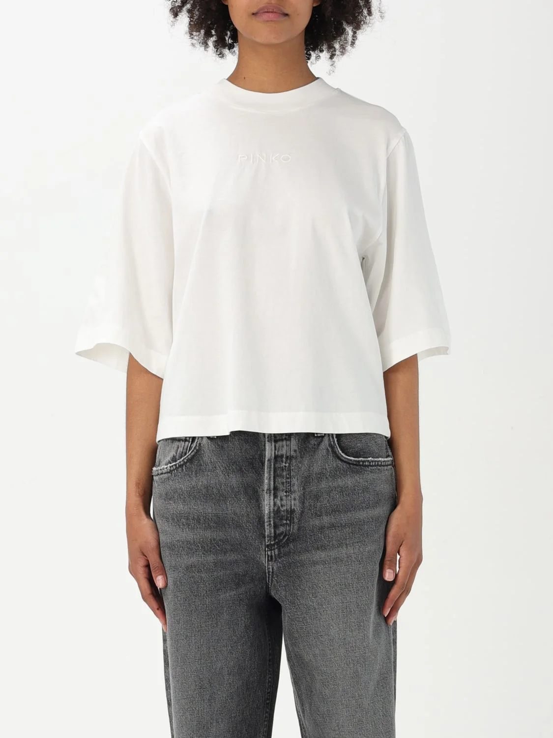 DESCRIPTION - Style: Urban-street - Logo: Tone-on-tone - Neckline: Crewneck - Shoulders: Relaxed - Sleeves: Short - Bottom: With straight hemline - Occasion: Morning - Materials: Cotton - Pattern: Plain-colored DETAILS AND CARE Composition CO 100 SIZE AND FIT Sizes not available Size and fit Relaxed fit Designer code: 104604A2F8 Z05 Giglio Code: G60808 Designer: Pinko Collection: Pinko Woman Category: Clothing Pinko