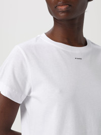 DESCRIPTION - Style: Basic, Contemporary - Logo: Contrasting - Model: Crewneck - Neckline: Crewneck - Shoulders: Regular - Sleeves: Short - Bottom: With straight hemline - Materials: Cotton - Pattern: All-over logo DETAILS AND CARE Composition cotone SIZE AND FIT Sizes not available Size and fit Slim fit Designer code: 100373A228 Z04 Giglio Code: 425471 Designer: Pinko Collection: Pinko Woman Category: Clothing Pinko