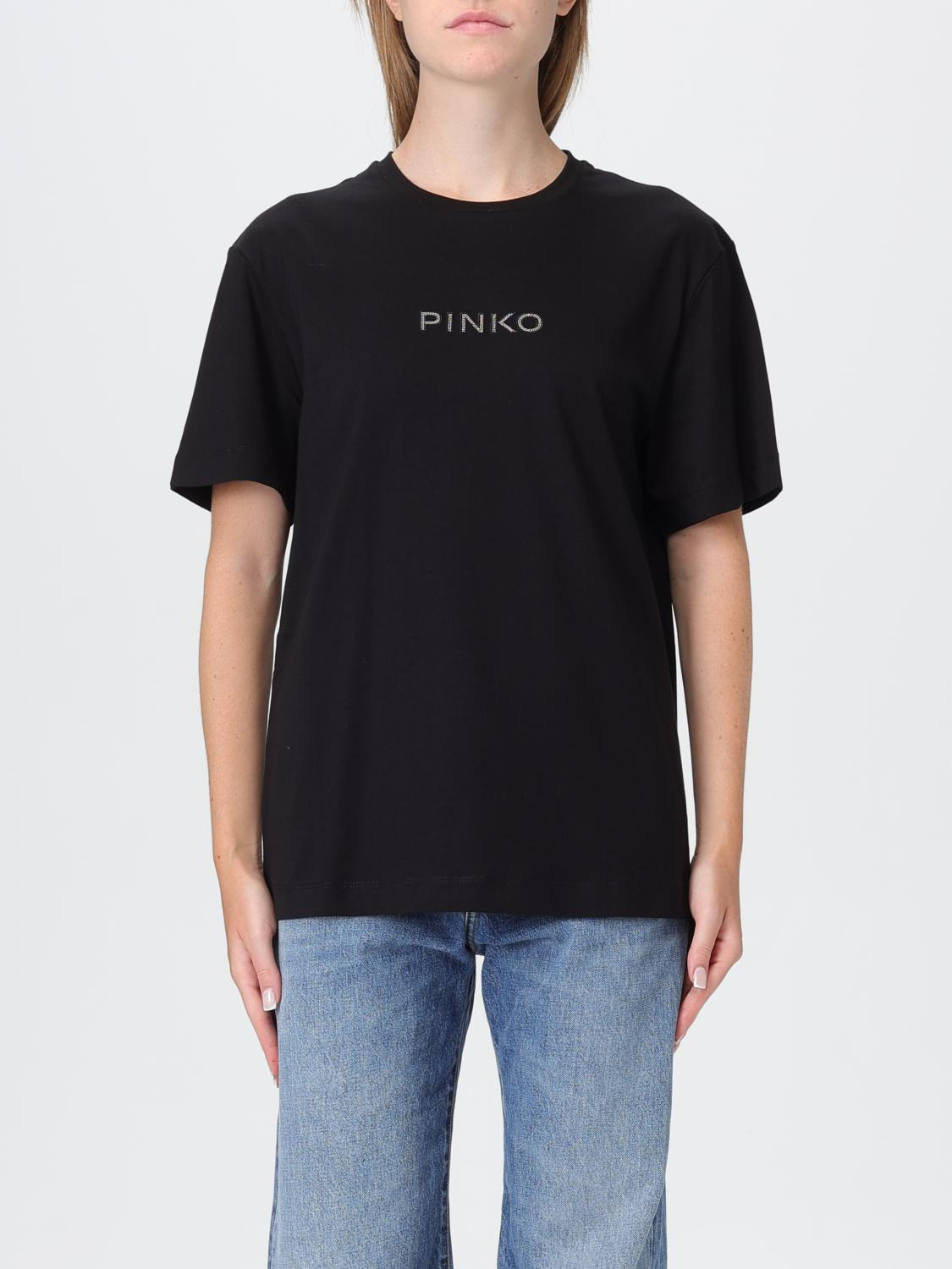 DESCRIPTION - Style: Sporty - Logo: Contrasting - Model: Crewneck - Neckline: Crewneck - Shoulders: Regular - Sleeves: Short - Bottom: With straight hemline - Materials: Cotton - Pattern: Logo DETAILS AND CARE Composition Cotton | 100% COTTON SIZE AND FIT Sizes not available Size and fit Regular fit Designer code: 105526A2RM Z99 Giglio Code: H25239 Designer: Pinko Collection: Pinko Woman Category: Clothing Pinko