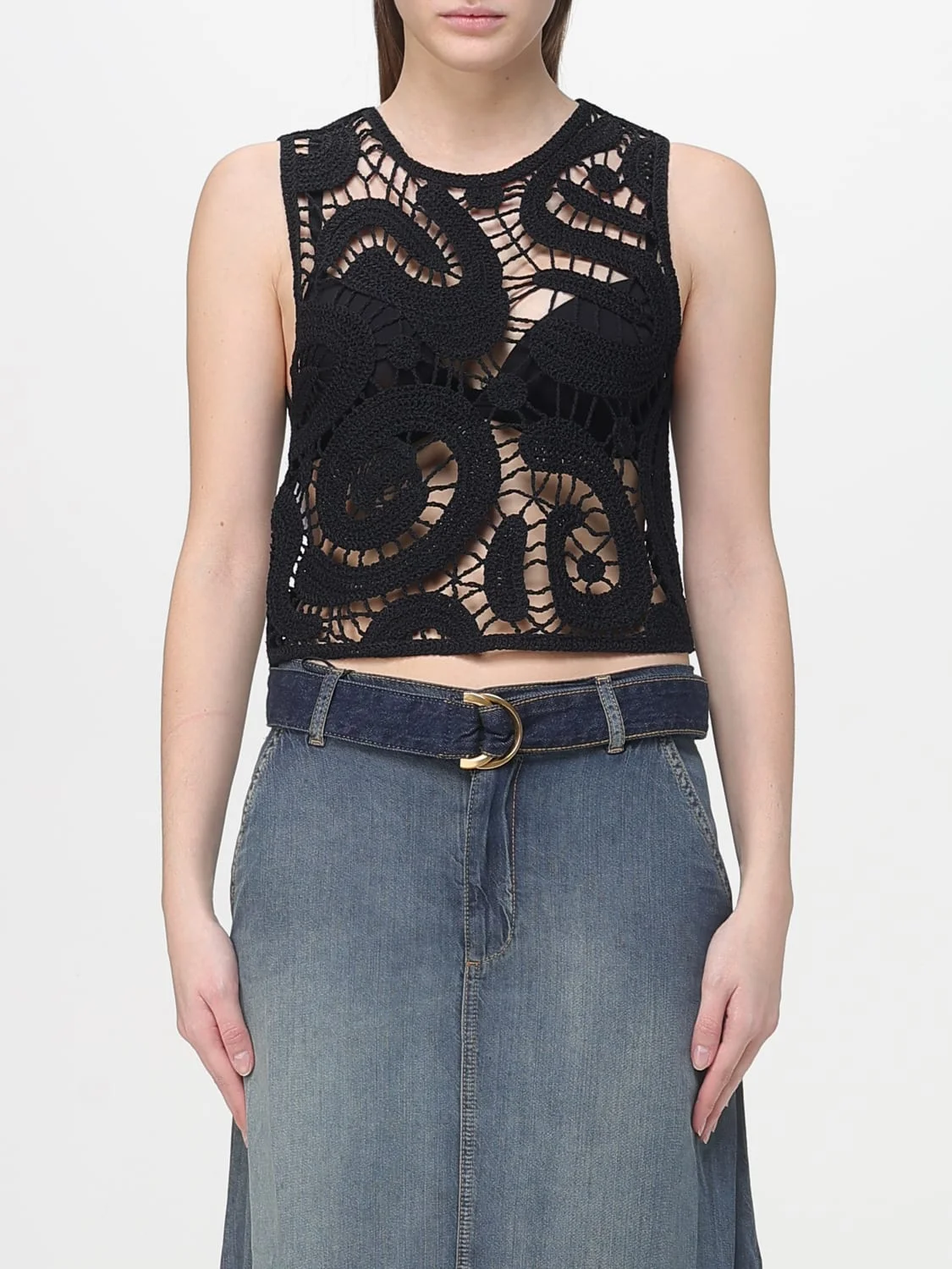 DESCRIPTION - Style: Bohemien, Ethnic - Neckline: Crewneck - Shoulders: Regular - Bottom: With straight hemline - Model: Pierced - Sleeves: Off-the-shoulder tops - Materials: Macrame - Pattern: Plain-colored DETAILS AND CARE Composition FI1 - 1° Filato Esterno: 63%VI 37%PA - SIZE AND FIT Sizes not available Size and fit Regular fit Designer code: 106438A354 Z99 Giglio Code: 441817 Designer: Pinko Collection: Clothing Pinko Category: Clothing > Top