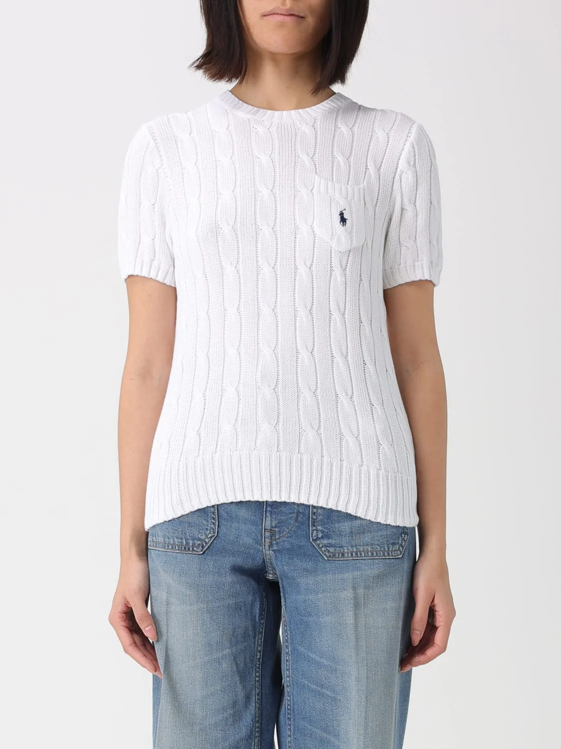 DESCRIPTION - Style: Classic - Logo: Contrasting - Model: Crewneck - Neckline: Crewneck - Shoulders: Regular - Sleeves: Short - Pockets: Patch pocket - Bottom: With straight hemline - Materials: Cotton - Pattern: Logo, Plain-colored DETAILS AND CARE Composition | SIZE AND FIT Sizes not available Size and fit Regular fit Designer code: 211971873 005 Giglio Code: H85566 Designer: Polo Ralph Lauren Collection: Clothing Polo Ralph Lauren Category: Clothing > Sweater