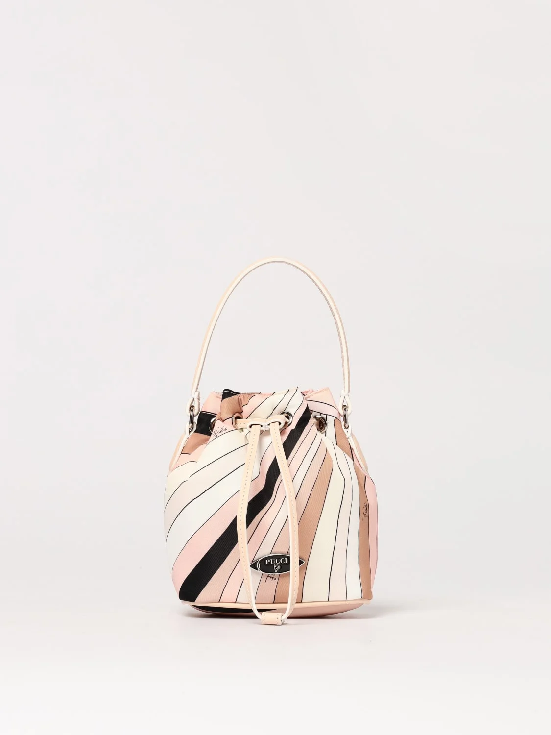 DESCRIPTION - Model: Bucket - Closure: With drawstrings - Shape: Rectangular - Handle: Flat - Logo: With logo - Materials: Smooth calfskin - Pattern: Multicolor stripes DETAILS AND CARE Composition 100%le SIZE AND FIT Sizes not available Designer code: 5HBC305H152 007 Giglio Code: G78651 Designer: Pucci Collection: Pucci Woman Category: Bags Pucci