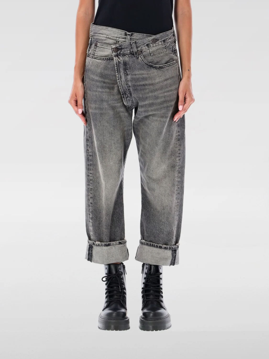 DESCRIPTION - Style: Urban-street - Closure: With button and zip - Pockets: 5-pocket - Waist: undefined - Bottom: With cuff - Materials: Cotton denim - Pattern: Plain-colored DETAILS AND CARE Composition 100% cotton SIZE AND FIT Sizes not available Size and fit Regular fit Designer code: R13W2048549A 134 Giglio Code: H28703 Designer: R13 Collection: R13 Woman Category: Clothing R13